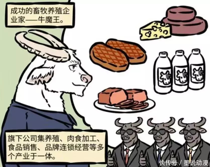 牛魔王:畜牧养殖业企业家如果有人问,《非人哉》漫画版中,哪个角色算得上成功的企业家,那牛魔王肯定算一个。牛魔王有着庞大的畜牧养殖业,企业涵盖养殖。肉类加工、食品销售、品牌连锁经营,甚至还有属于自己的黄金牧场。牛魔王的身家都能以百亿计算,甚至是千亿,平时送红孩儿礼物,那都是用黄金打造,1:1黄金牛魔王雕像,手里还抱着小时候的红孩儿,这种级别的黄金雕像万联证券,那是说给就给,只不过红孩儿不喜欢,所以被它丢掉。