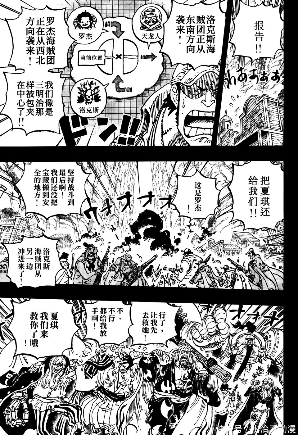 神之谷大战正在爆发当中,洛克斯海贼团攻打神之谷,罗杰海贼团也杀入神之谷,他们要救出夏琪。天龙人正在撤离,他们连财宝都无法带走,海军只能把天龙人带走,不然天龙人就会被干掉,洛克斯海贼团已经杀入到神之谷的中央位置。